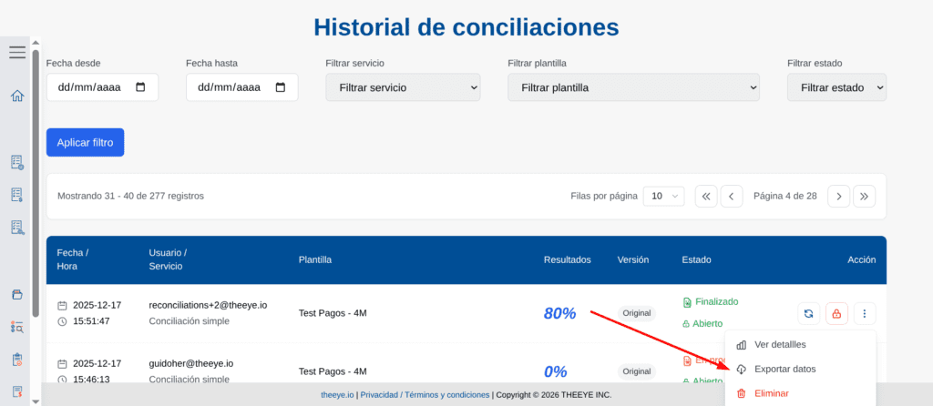 También puedes exportarlo desde el historial de conciliaciones.
